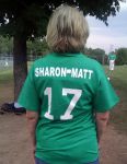 Last night our Damn Yankees team was greeted by our manager, Ray Demers, with a box of uniform jerseys to pass out before the opening round game of the playoffs. The front of the jersey reads ''The Kellys'' and the back shoulder reads ''Matt & Sharon.'' We're all wearing No. 17 and the jerseys, of course, are Kelly green.